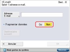Il est possible de définir la taille maximale des données des e-mails et des documents I-Fax sortants. Si la taille d'un e-mail dépasse cette limite, il est fragmenté en plusieurs e-mails avant l'envoi.