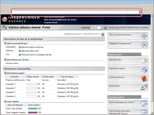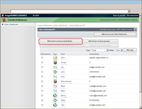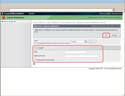 Adresse e-mail obtenue pour la machine imageRUNNER ADVANCE