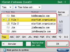 Adresse e-mail définie pour la machine imageRUNNER ADVANCE.