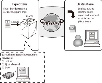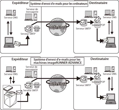 → [Réglages de fonction] → [Envoi] → [Réglages E-mail/I-Fax] → [Réglages de communication].La fonction I-fax des machines imageRUNNER ADVANCE utilise le protocole SMTP pour la transmission.