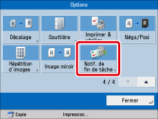 Une indication de fin de copie réservée est envoyée au destinataire spécifié dès que le tirage est terminé.