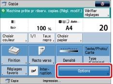 Appuyer sur [Options] sur l'écran des fonctions de base de la copie rapide.