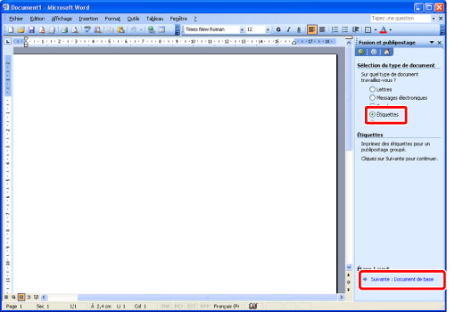 Sélectionner [Etiquettes] pour [Sélection du type de document] → cliquer sur [Suivante].