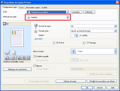 Sélectionner [Imprimer] pour [Méthode de sortie].