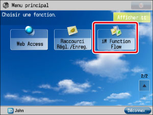 Si [iW Function Flow] n'apparaît pas sur l'écran Menu principal, appuyer sur [  ]/[Afficher tt]. Si [iW Function Flow] n'apparaît toujours pas après l'activation de [  ]/[Afficher tt], vérifier que iW Function Flow est bien lancé.