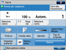 Se [Gestione ID divisione] è impostato su 'On' e se per la schermata predefinita è impostata una funzione limitata mediante Limite funzioni, all'avvio viene visualizzata la schermata Menu principale. (Se [Gestione ID divisione] è impostato su 'On', [Copia] viene limitata mediante Limite funzioni). Per visualizzare la funzione impostata per la schermata di avvio predefinita, selezionare la funzione nella schermata Menu principale → digitare ID divisione/PIN nella schermata Collegamento.