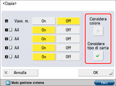 Se [Considera tipo di carta] e [Considera colore] sono impostati su 'Off'