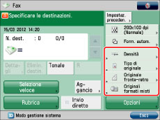 Premere [Impostazioni funzione] → [Invio] → [Impostazioni fax].