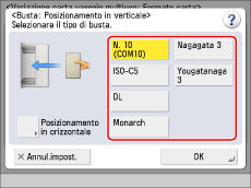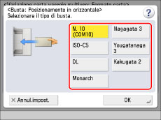 Se in [Registr.impost.predefinite vassoio multiuso] in [Preferenze] (Impostazioni/Registrazione) viene registrato un formato carta diverso dalle buste, impostare [Registr.impost.predefinite vassoio multiuso] su 'Off'.