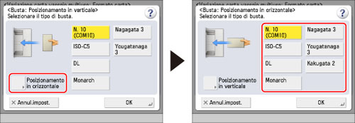 Se si stampano buste COM10 No.10, ISO-C5, DL o Monarch, fare attenzione all'orientamento quando si posiziona l'originale.(Vedere "Posizionamento degli originali".)
