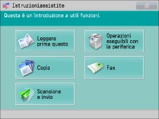 Premendo [Istruzioni assistite] nella schermata Menu principale si apre la schermata delle istruzioni assistite della macchina.