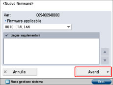 Firmware applicabile: indica il nuovo firmware applicabile alla macchina.
