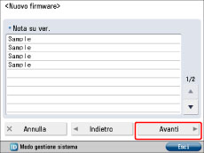 se il nuovo firmware contiene una nota sulla versione, questa viene visualizzata.