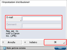 inserire l'indirizzo di posta elettronica dell'amministratore. L'utente può ricevere messaggi di posta elettronica riguardanti lo stato di aggiornamento inviato dal server di distribuzione.