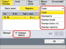 Selezionare l'elenco a comparsa → selezionare il tipo di lavoro da stampare → premere [Stampa elenco].