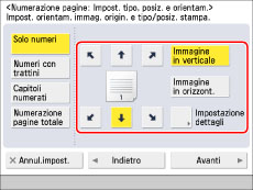 Se si utilizza [Numerazione pagine] con [Aggiunta copertina] o [Inserimento fogli], i numeri non verranno stampati sulle pagine inserite.