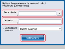Per maggiori informazioni sui servizi di accesso, vedere "Descrizione dei servizi di accesso". Se non è stato impostato un servizio di accesso, la schermata Accedi non verrà visualizzata.