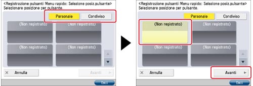 Per le istruzioni relative all'utilizzo di un pulsante personalizzato/pulsante condiviso, vedere "Richiamo di un pulsante personalizzato/pulsante condiviso".
