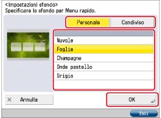 Selezionare il pulsante per il quale impostare lo sfondo → selezionare le impostazioni dello sfondo → premere [OK].