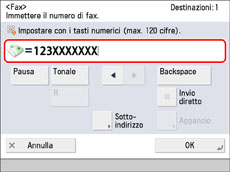 Se si desidera specificare un subindirizzo per il lavoro da trasmettere, assicurarsi che il fax ricevente supporti i subindirizzi di standard ITU-T (International Telecommunication Union - Telecommunication Standardization Sector). (Vedere "Trasmissione utilizzando un subindirizzo".)