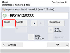 Premere [Pausa] dopo aver immesso il numero di accesso alla linea esterna ('R' nell'esempio riportato in precedenza) e prima di immettere il numero di fax.