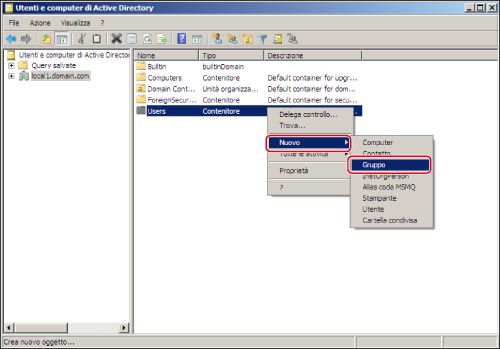 Aggiungere un utente registrato Active Directory al gruppo 'Canon Peripheral Admins' oppure a un gruppo di amministratori arbitrario di Active Directory, in modo da rendere tale utente un amministratore di Server Authentication. Attenersi alla procedura riportata di seguito per aggiungere il gruppo 'Canon Peripheral Admins'.