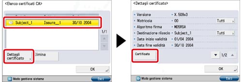 Selezionare [Elenco certificati CA] → eseguire la seguente operazione.