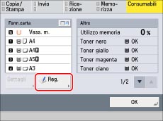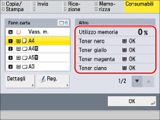 La tabella seguente indica la quantità residua dei materiali di consumo.