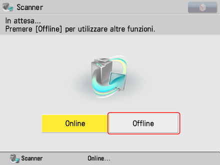 Dopo aver eseguito la scansione, impostare la funzione scanner su "offline" per utilizzare la funzione copia, fax o altre funzioni.