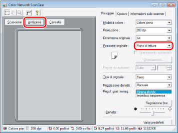 Selezionare [Piano di lettura] per [Posizione originale] → fare clic su [Anteprima].