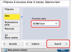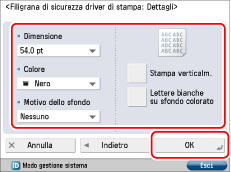 Se [Filigrana di sicurezza driver di stampa] e [Stampa forzata filigrana di sicurezza] sono impostate contemporaneamente per una stampante, Stampa forzata filigrana di sicurezza ha la priorità.