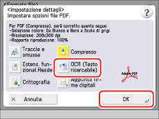 Selezionare [OCR (Testo ricercabile)] → [OK].