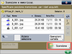 Al termine della scansione, i dati acquisiti vengono memorizzati nell'Area di condivisione specificata.