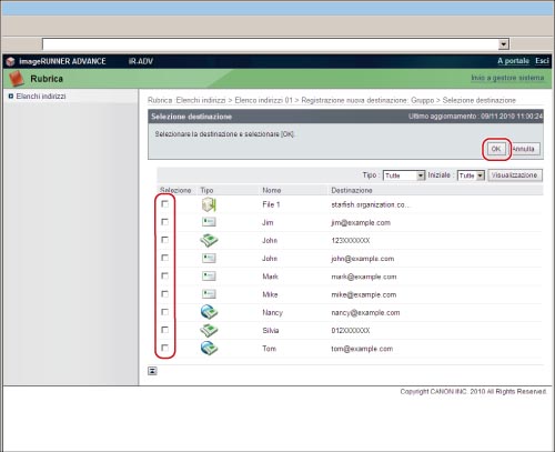 Selezionare gli indirizzi e-mail da registrare nel gruppo → fare clic su [OK].