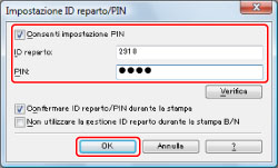 Viene chiusa la finestra di dialogo [Department ID/PIN Settings].