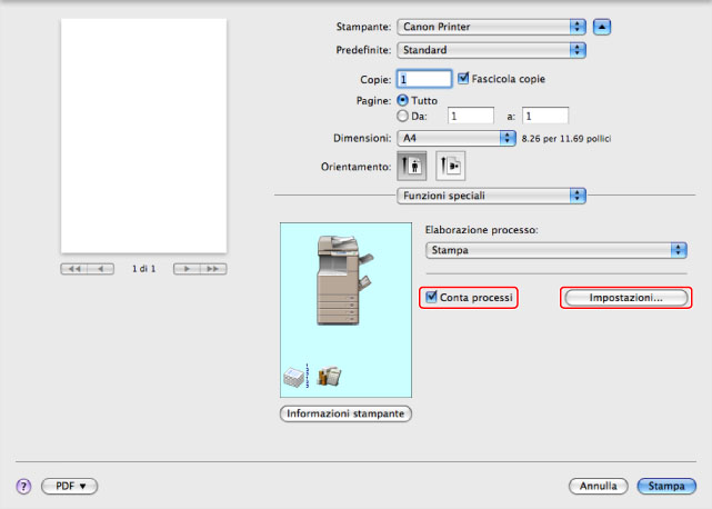 In base al tipo e alla versione del driver di stampa e al software applicativo in uso, l'aspetto della schermata può differire da quello effettivamente visualizzato.