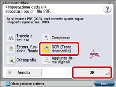 Premere [OCR (Testo ricercabile)] → [OK] → [OK].