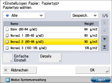 Bei Auswahl von [Normal] wählen Sie das Papiergewicht unter [Einst.Gewicht Normalpapier].