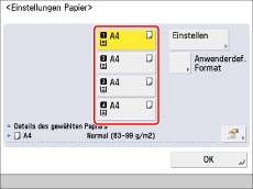 Geben Sie das Papierformat ein → Bestätigen Sie durch Berühren der Taste [OK].