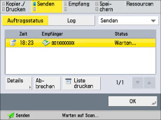 Wenn Sie [Senden], [Auftragsstatus], [Fax] als Standardanzeige (Status Monitor/Abbruch) einstellen: