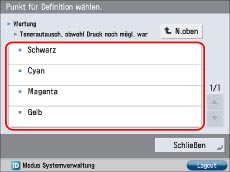 Berühren Sie die Taste für die Farbe der ausgetauschten Tonerpatrone.