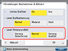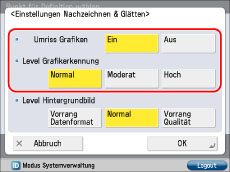 Wählen Sie [Ein] für <Umriss Grafiken> → Legen Sie die Einstellungen für <Level Grafikerkennung> fest.