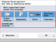 Damit Sie diese Einstellung verwenden können, müssen Sie zunächst Favoriteneinstellungen speichern. (Vgl. Abschnitt "Zuweisen von Funktionskürzeln".)