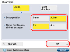 Wählen Sie [Ein], um den im Adressbuchs gespeicherten Namen des Empfängers in der Kopfzeile anzugeben.