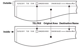 Beispiel: Wenn Sie <Kopfzeile> und <Name Empfängereinheit anzeigen> aktivieren, werden die Informationen beim Empfänger folgendermaßen gedruckt: