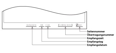 Sie können entscheiden, ob Datum, Tag und Zeit des Empfangs, Übertragungsnummer und Seitenzahl am unteren Rand des empfangenen Dokuments gedruckt werden sollen.