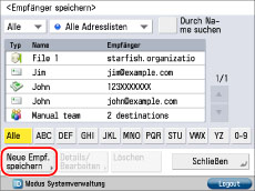 Wenn Sie Dokumente nicht über einen Server senden und die IP-Adresse des Empfängers nicht auf einem DNSServer registriert ist, geben Sie den Domainnamen in folgendem Format ein: (anwender)@[IP-Adresse des Empfängers]. Geben Sie in "(anwender)" eine beliebige Zeichenfolge ein.