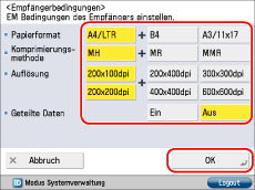 Definieren Sie die Empfängerbedingungen passend zu den Spezifikationen des Empfangssystems. Beim Einstellen von Bedingungen, die das Empfangssystem nicht erfüllen kann, können Übertragungsfehler auftreten.