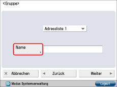 Bevor Sie eine Gruppenadresse speichern, müssen Sie die einzelnen Empfänger wie Faxnummern, E-Mail- und Dateiserveradressen einzeln gespeichert haben.