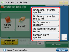 Speichern/Bearbeiten/Löschen von Tasten mit Favoriteneinstellungen für Scannen und Senden